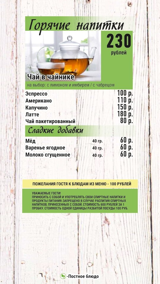 Чай в чайнике в ассортименте | 0,8л. | 420р. |
