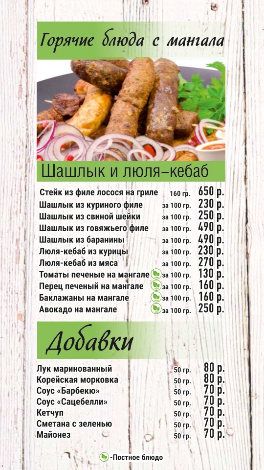 Шашлык из говяжей вырезки (филе миньон) | 100 гр | 750р. |