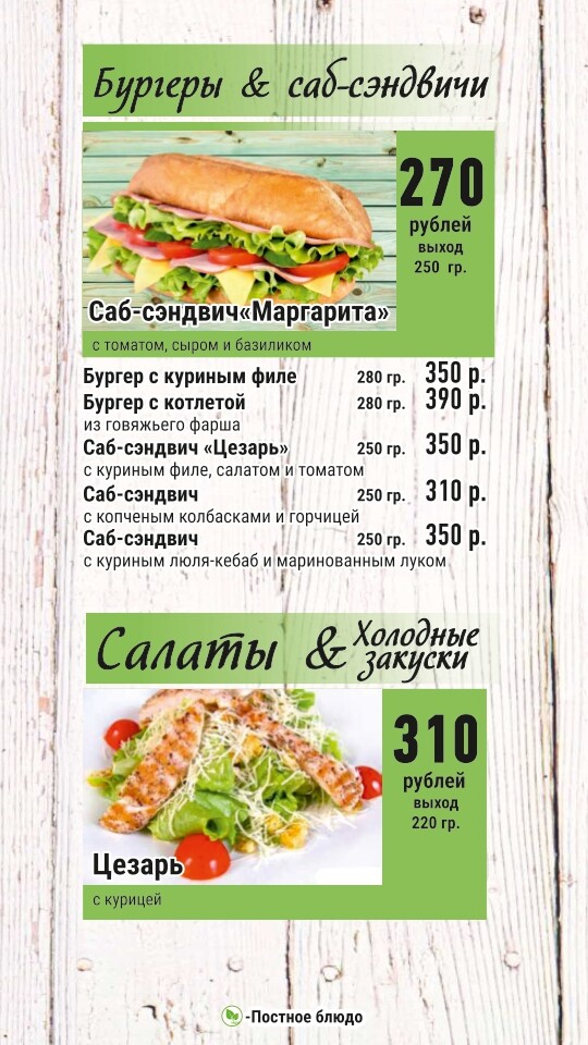Бургер с куриной котлетой | 300гр. | 680р. |